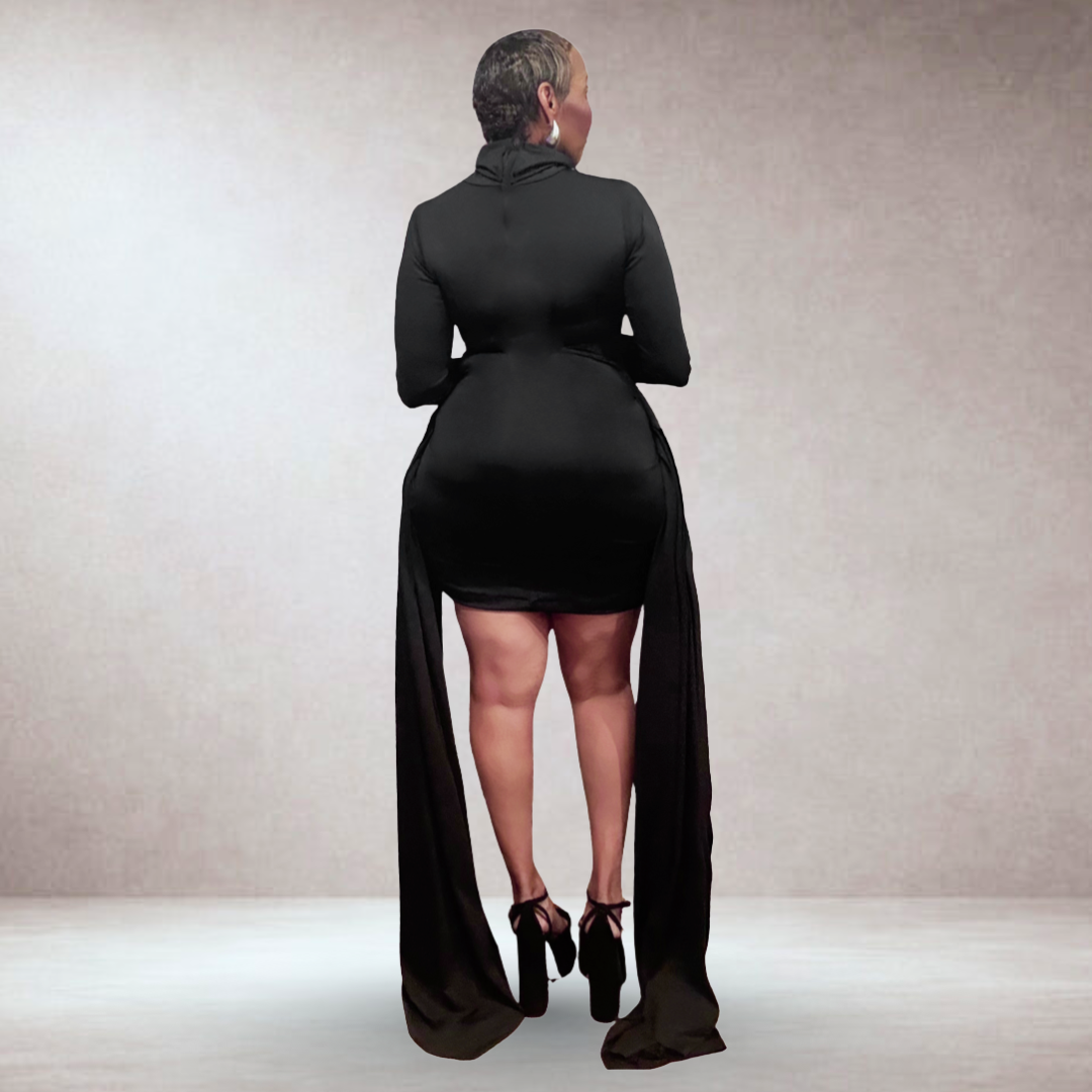 SHORT AND SWEET delivers sleek sophistication with a fitted silhouette, soft draping, and dramatic extended panels that trail with intention. Minimal in length but rich in presence, this piece balances restraint and allure like only PHILTHY can.